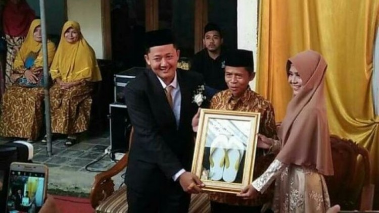 Sontak pasangan yang menikah pada 29 Desember 2018 lalu menjadi viral di media sosial. Seperti ditayangkan dalam Liputan6, Rabu (2/1/2019) pagi, pengantin baru tersebut memilih sepasang sandal jepit sebagai bentuk kesederhanaan. Sandal jepit dipilih karena enak dipakai juga memiliki filosofi agar berjalan bersama-sama.
